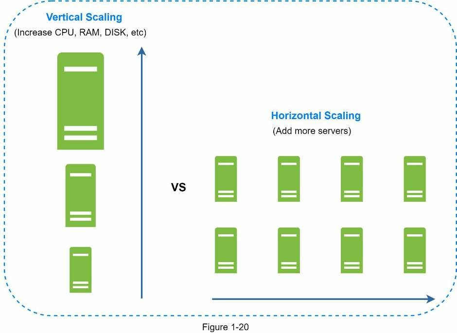Mở rộng theo chiều dọc ám chỉ đến “scale-up”(làm cho hệ thống lớn hơn), nghĩa là quá trình thêm các phần cứng (CPU, RAM, …) vào server của bạn. Mở rộng theo chiều ngang, ám chỉ đến “scale-out”(thêm thành phần vào hệ thống), cho phép ta thêm nhiều hơn một server vào nguồn tài nguyên của bạn.