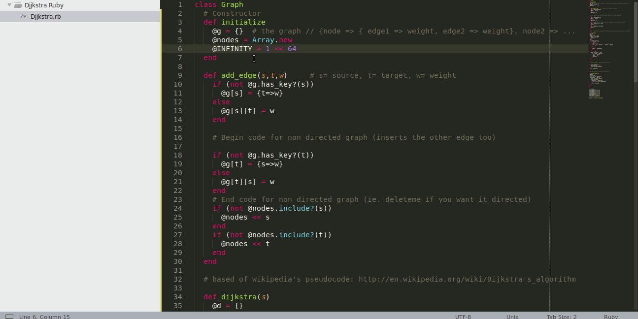 Mình đã giải thích rất rõ cách hoạt động của giải thuật Dijkstra rồi. Nên việc triển khai nó trong code Ruby khá dễ hiểu.