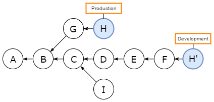 Đầu tiên bên nhánh product mình có 2 commit là G và H, Hiện tại bên nhánh develop của mình cần commit H nhưng mình không cần đến commit G, vậy chúng ta sẽ làm như thế nào ạ, tương đối phức tạp đúng không ạ. Vâng đây là lý do chúng ta lên sử dụng cherry-pick