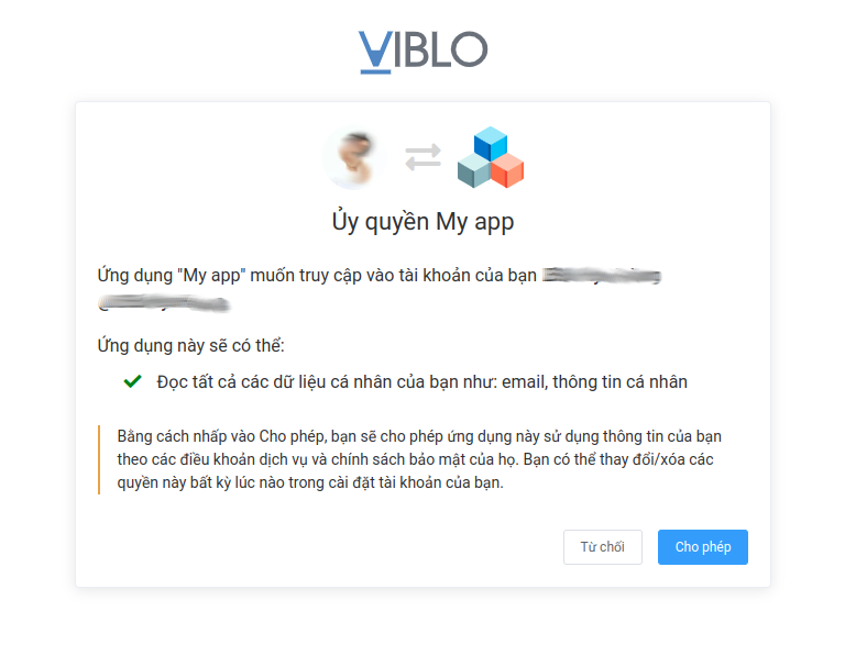 Nếu người dùng chọn Từ chối, Viblo Accounts sẽ quay trở lại trang chủ.