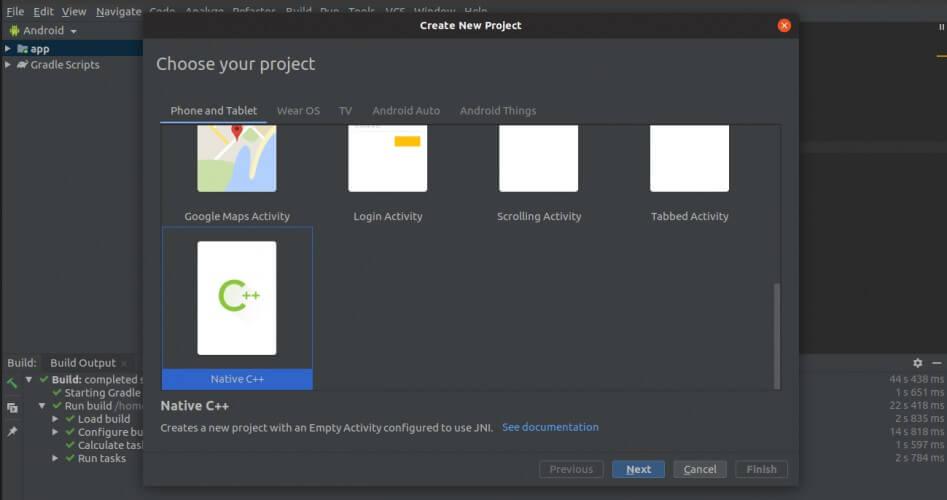 Nếu bạn đang có phiên bản Android Studio cũ hơn mà không có sự hỗ trợ của mẫu C ++ gốc. Vậy, bạn có thể sử dụng CMake. Sự khác biệt giữa hai cách tiếp cận này là trong cách tiếp cận CMake, bạn phải thêm các tệp theo cách thủ công trong khi ở cách tiếp cận trước đó, mọi thứ được thêm theo mặc định.