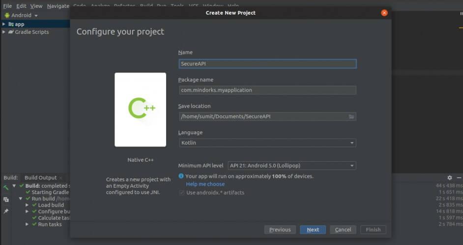 Nếu phiên bản Android Studio của bạn không có sự hỗ trợ của CMake thì bạn cũng có thể sử dụng NDK để bảo mật các khóa API của mình. Tại đây, bạn có thể sử dụng quy trình xây dựng ndk. Hãy để xem cách làm điều này.