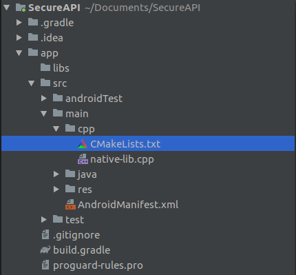 Bước 4: Bạn có thể thấy rằng theo mặc định, bạn sẽ có tệp native-lib.cpp và tệp CMakeLists.txt được thêm vào dự án của bạn trong thư mục cpp.