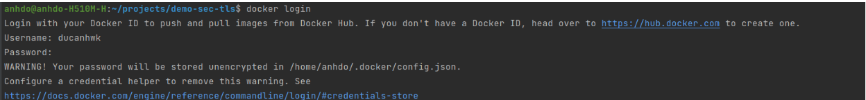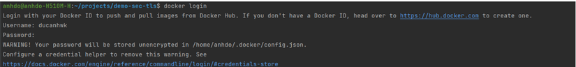 Nếu bạn chưa có account docker, hãy đăng ký 1 tài khoản trên docker hub, sau đó login qua command docker login