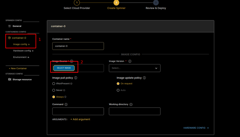 Chọn Review & Deploy và Spinner nhanh chóng được tạo
