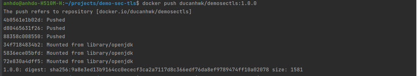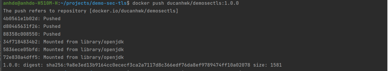 Chạy lệnh docker push để push image vừa tạo lên trên Docker Hub