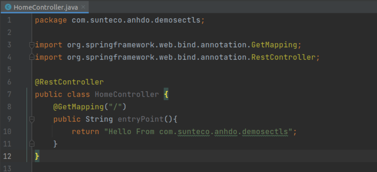 Để ví dụ, đầu tiên mình tạo 1 Spring boot project, và tạo một API đơn giản như sau.