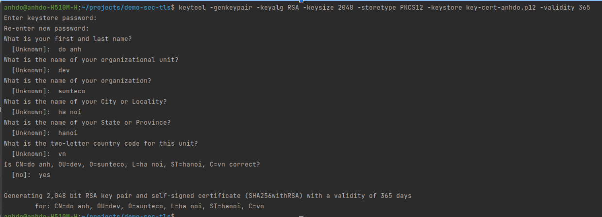 keytool -genkeypair -keyalg RSA -keysize 2048 -storetype PKCS12 -keystore key-cert-anhdo.p12 -validity 365