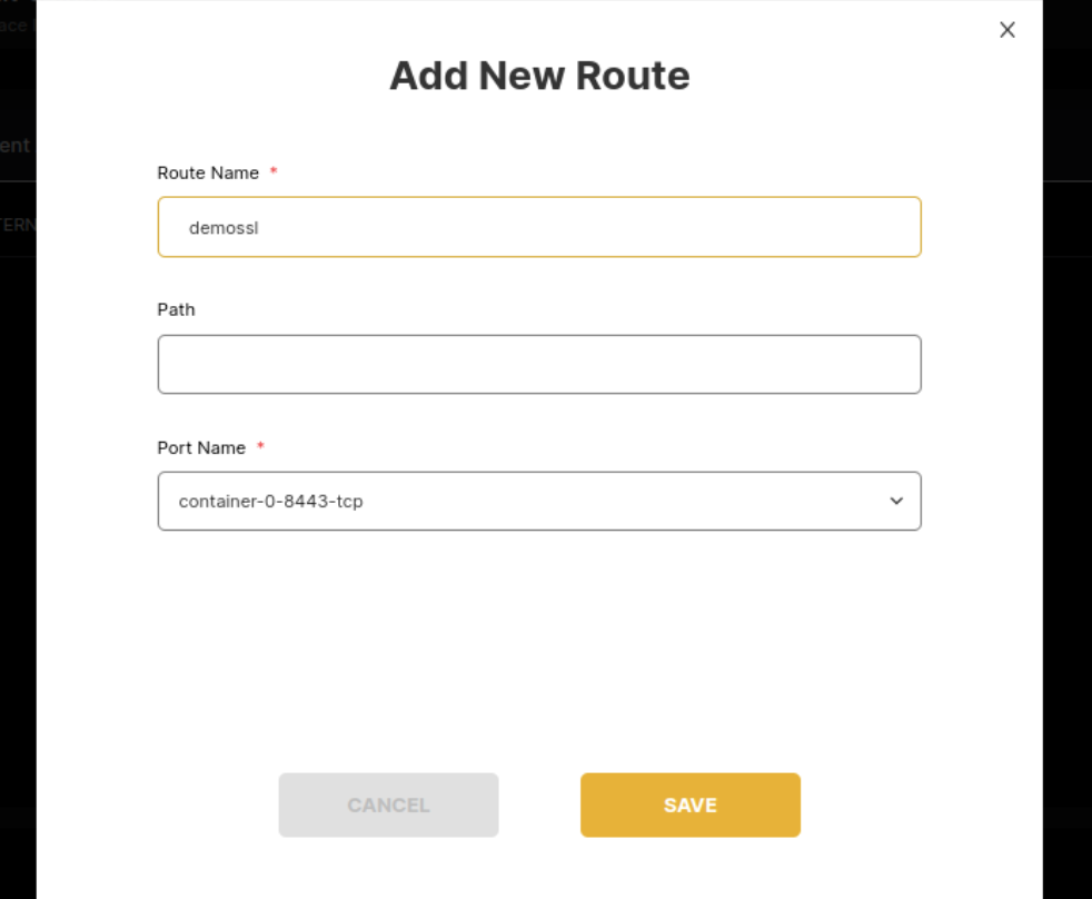 Tại màn hình Add New Route điền Route Name, và chọn Port name là port mapping vừa được tạo.