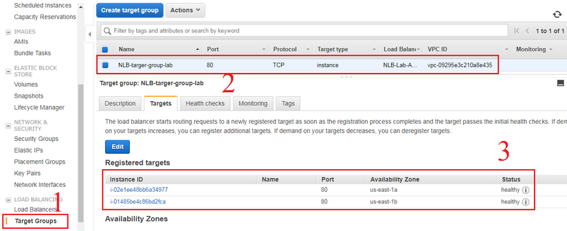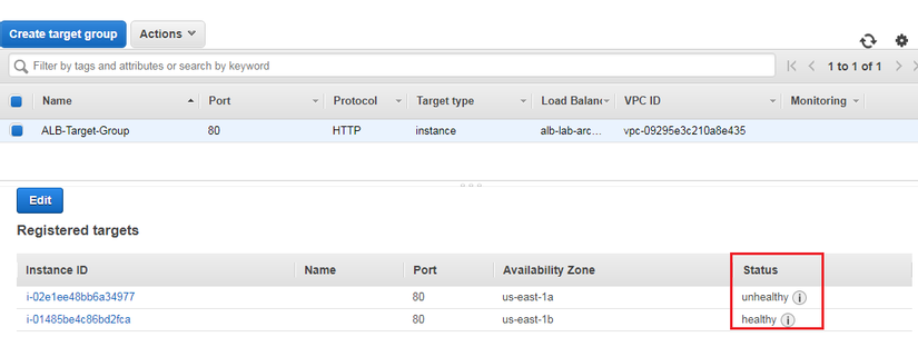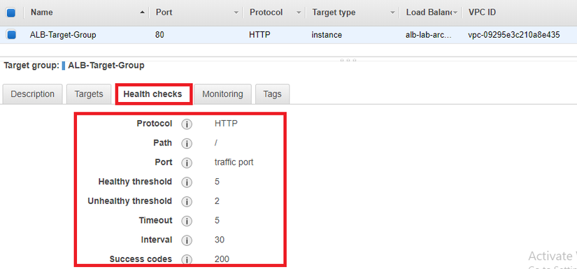 Trong phần target group, kiểm tra phần status: healthy nhé.