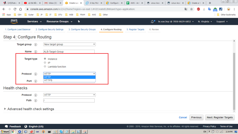 Cách config ALB cũng tương tượng như NLB thôi, nhưng có một vài điểm khác như bên dưới: