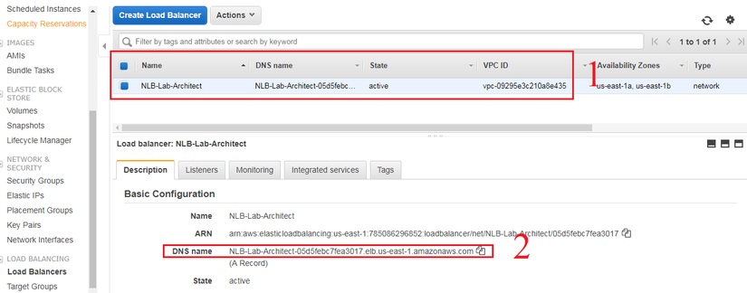 Sau khi hoàn tất, vào lại Load Blancer, kiểm tra lại phần DNS Name.