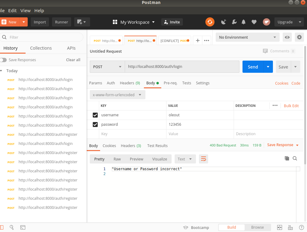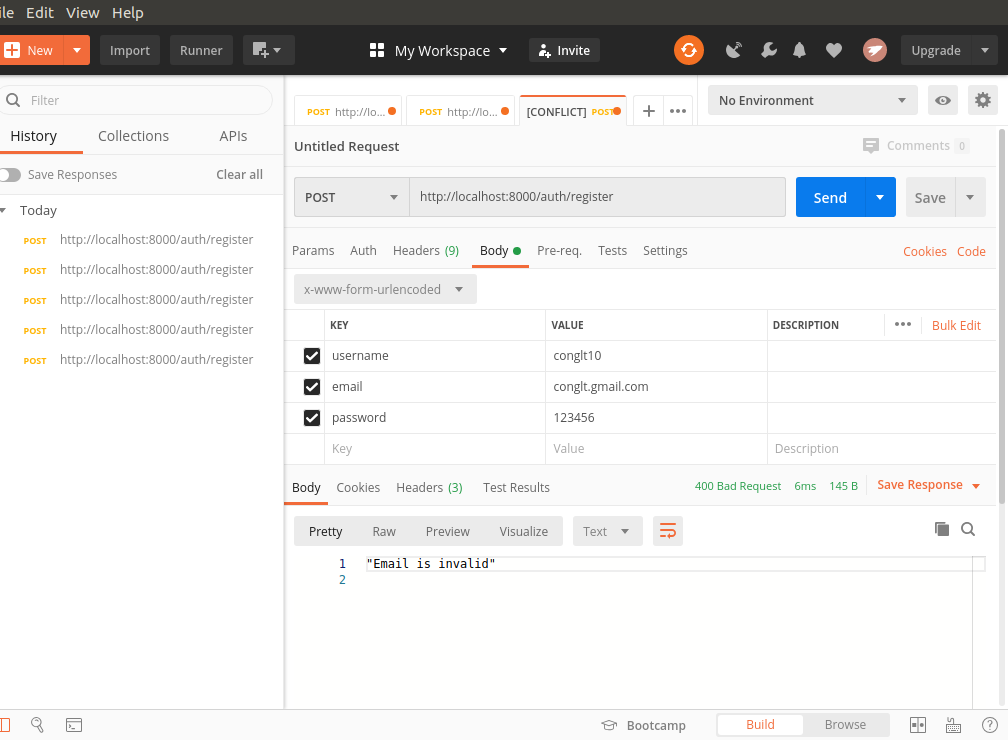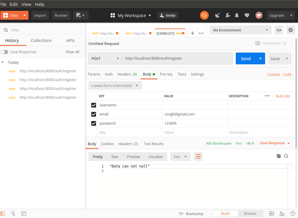 - Đăng ký thất bại do thiếu hoặc sai thông tin (trả về status 400)