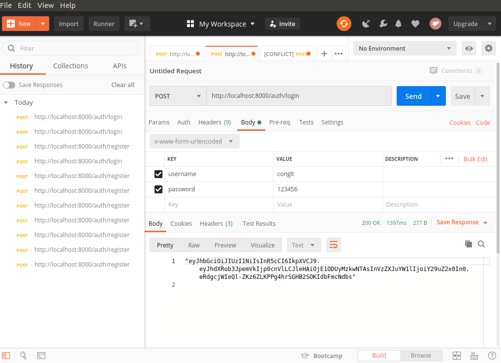 Chúng ta sẽ dùng thư viện jwt-go để tạo json web token, token sẽ được mã hóa theo secret key lưu ở .env.