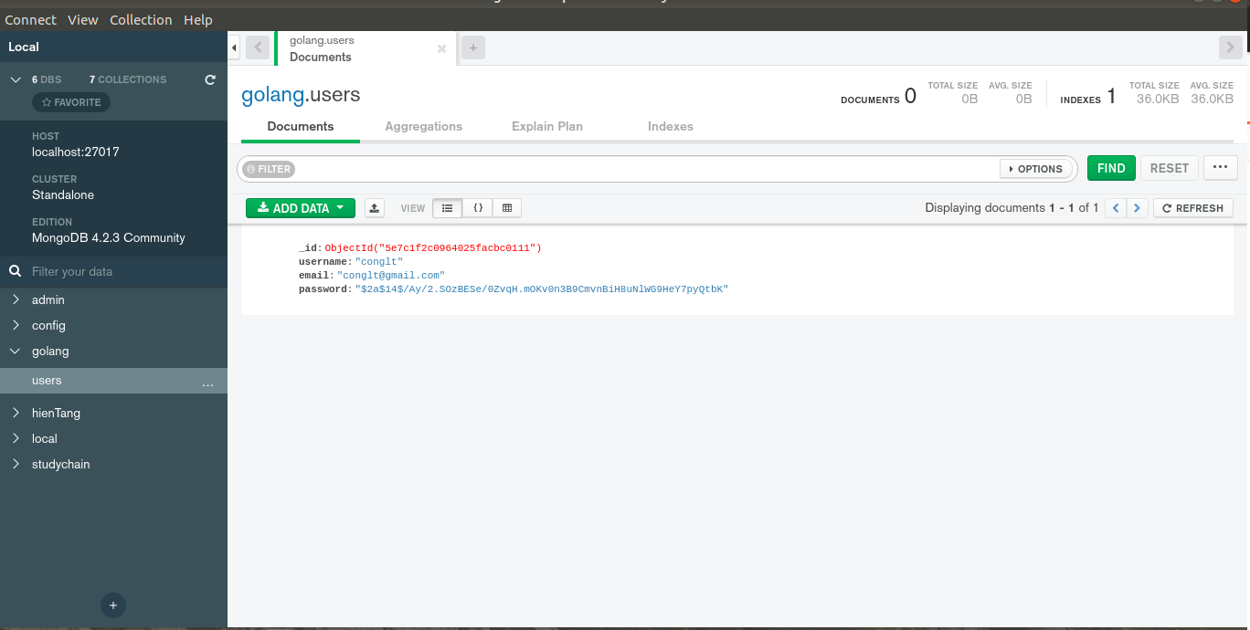 map[_id:ObjectID("5e7c1f2c0964025facbc0111") email:conglt@gmail.com password:$2a$14$/Ay/2.SOzBESe/0ZvqH.mOKv0n3B9CmvnBiH8uNlWG9HeY7pyQtbK username:conglt]
