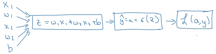 Với L là loss function  (hàm mất mát). Giả sử ta có 2 đặc tính x1, x2 biểu đồ tính toán để tính toán tổn thất sẽ là: