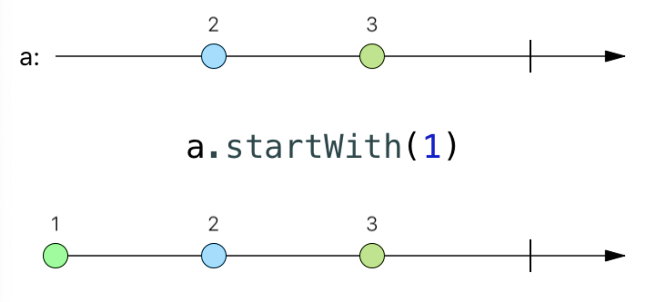 Nếu bạn muốn một Observable phát ra một giá trị đặc biệt trước khi bắt đầu phát ra những giá trị bình thường, sử dụng startWith