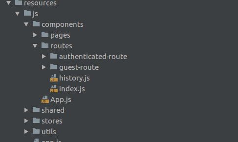 Đây sẽ là nơi chứa các components của mình. Mình có phân ra thành 2 loại nhỏ nữa là pages và routes. pages chính là nơi lưu trữ các view mà các bạn có thể truy cập. Còn routes sẽ là nơi chưa guest routes (Route sử dụng cho nhưng user không đăng nhập, ở đây hiện tại sẽ chỉ có view đăng nhập và đăg ký) và authenticated-route (Route sử dụng cho các user đã đăng nhập)