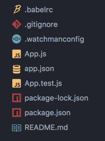 Nếu chúng ta xem thư mục được tạo bởi Create-react-native-app, chúng ta sẽ thấy các file sau: