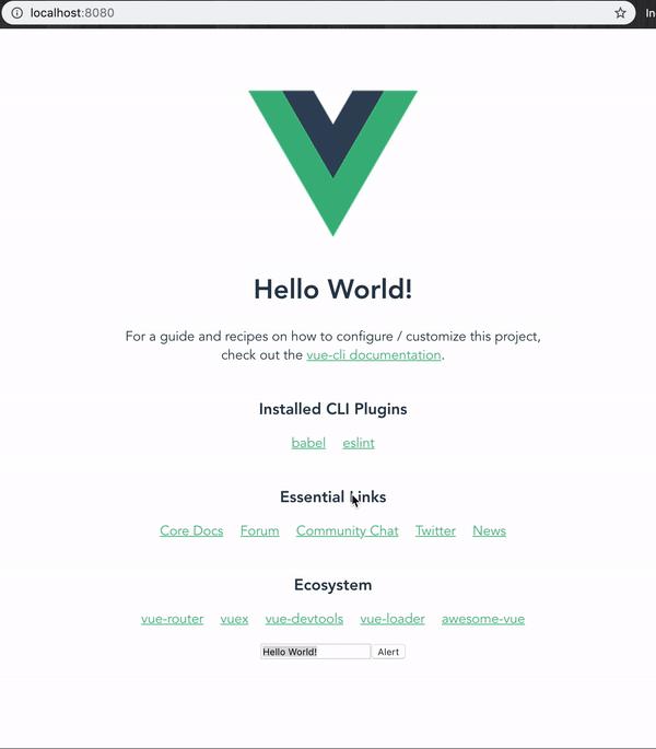 Hãy thêm một button vào App.vue gọi phương thức alertMessage của chúng tôi khi nhấp vào dòng dưới <input />: