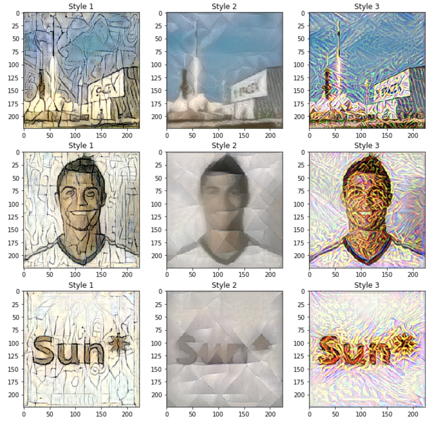 Vậy nói cách khác, khi ảnh kết quả của chúng ta đạt được mất mát nhỏ nhất, điều này đồng nghĩa với việc nó chắc chắn sẽ giống với ảnh nội dung và ảnh phong cách. Tuỳ theo việc chúng ta khai báo hệ số cho các thành phần của hàm mất mát mà ảnh kết quả sẽ khác nhau.
