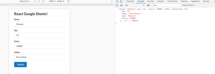 Như vậy là chúng ta đã có thể dùng React post form data vào Google Sheet rồi!