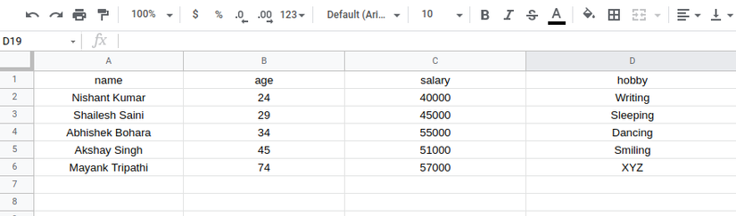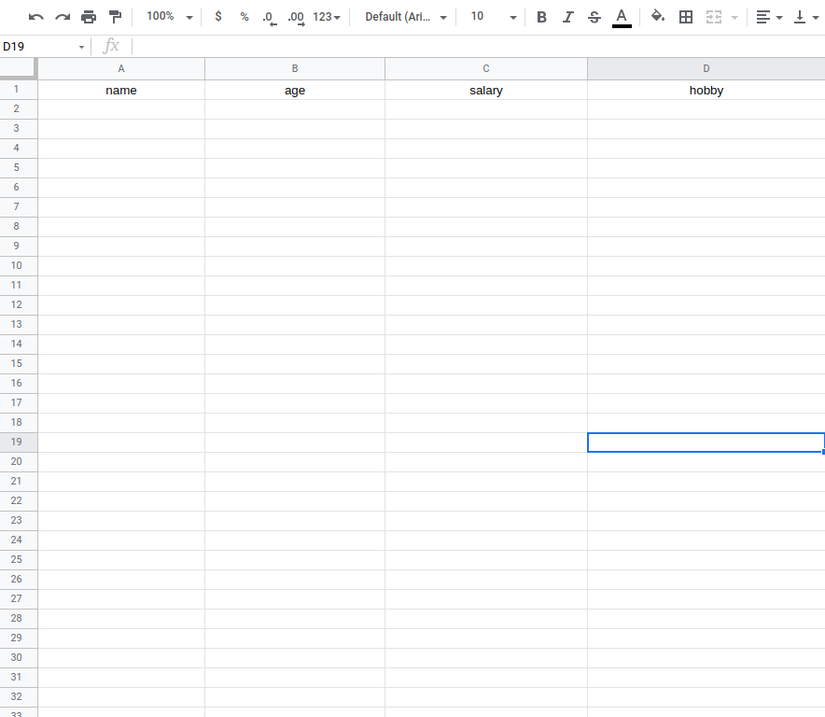 Thêm tên một số cột trong Google Sheet như tên các trường.