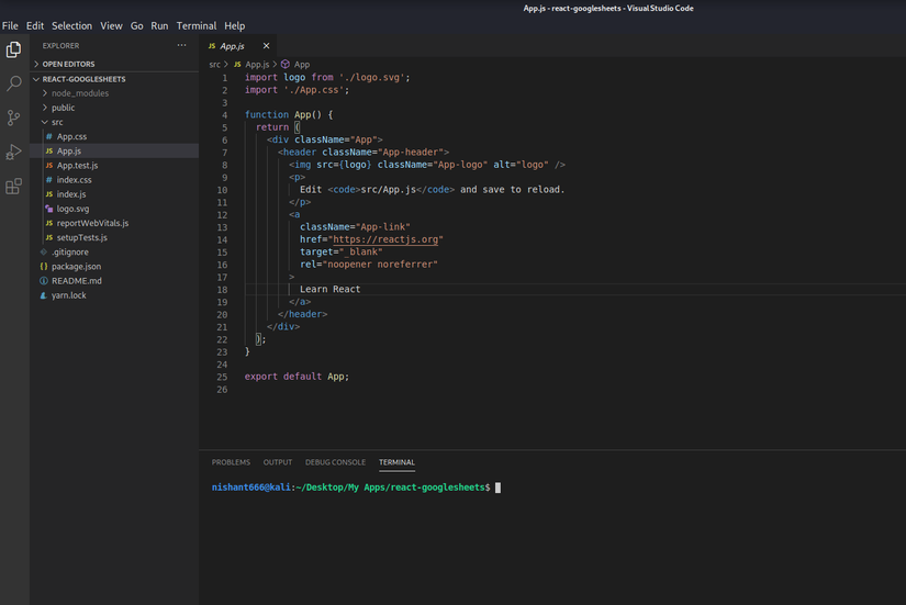 Để bắt đầu, chúng ta cùng tạo một project React bằng npx create-react-app react-googlesheets nào!