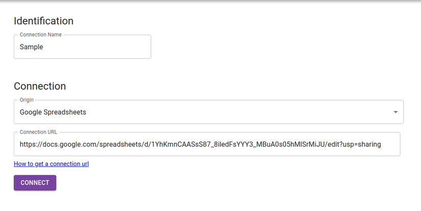 Tạo mới một connection và paste link Google Sheet vào thôi.