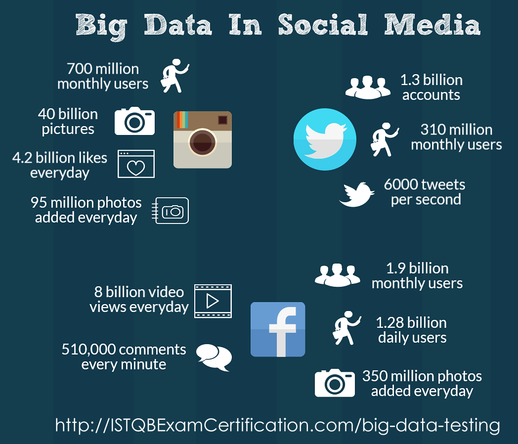 Các trang social media thường chứa lượng data khổng lồ về pictures, videos, likes, posts, comments,... Không chỉ được lưu trữ trên nền tảng big data, nó còn có thể xử lý và phân tích để đưa ra các đề xuất trên nội dung mà người dùng yêu thích.