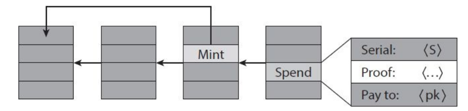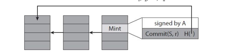 - Tạo giao dịch có kèm theo số seri S (tiết lộ S). Có nghĩa là: "Tôi biết một số r mà Commit(S, r) thuộc {c1, c2, ..., cn}".