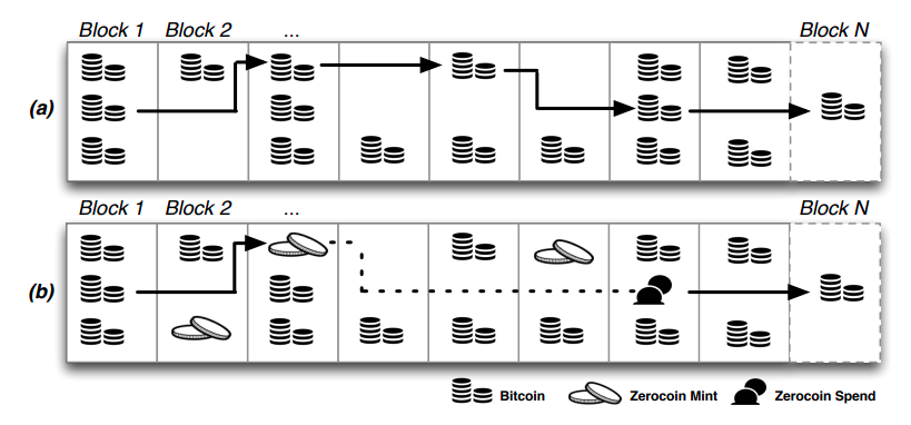 Lưu ý: ZeroCoin chưa được triển khai trên mạng Bitcoin vì khi implement ZeroCoin cần phải thực hiện ở tầng giao thức, độ phức tạp cao cũng như cần sự đồng thuận từ cộng đồng cũng như đội ngũ phát triển.