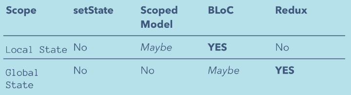 Vì vậy tất cả cách tiếp cận được đề cập ở trên đều có một hoặc nhiều vấn đề nên không thể được coi là cách quản lý state tốt nhất trong Flutter và đó là cách mà mô hình BLoC hoạt động hiệu quả vì nó có thể giải quyết tất cả các vấn đề nêu trên