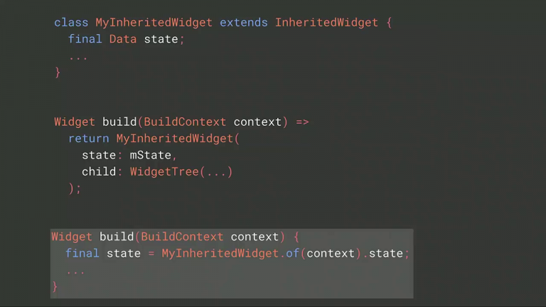 Nó là một loại widget đặc biệt xác định context tại root của các cây con và có thể phân bổ các context này đến mọi widget trong cây con đó một cách hiệu quả Như đã nói , nó có thể