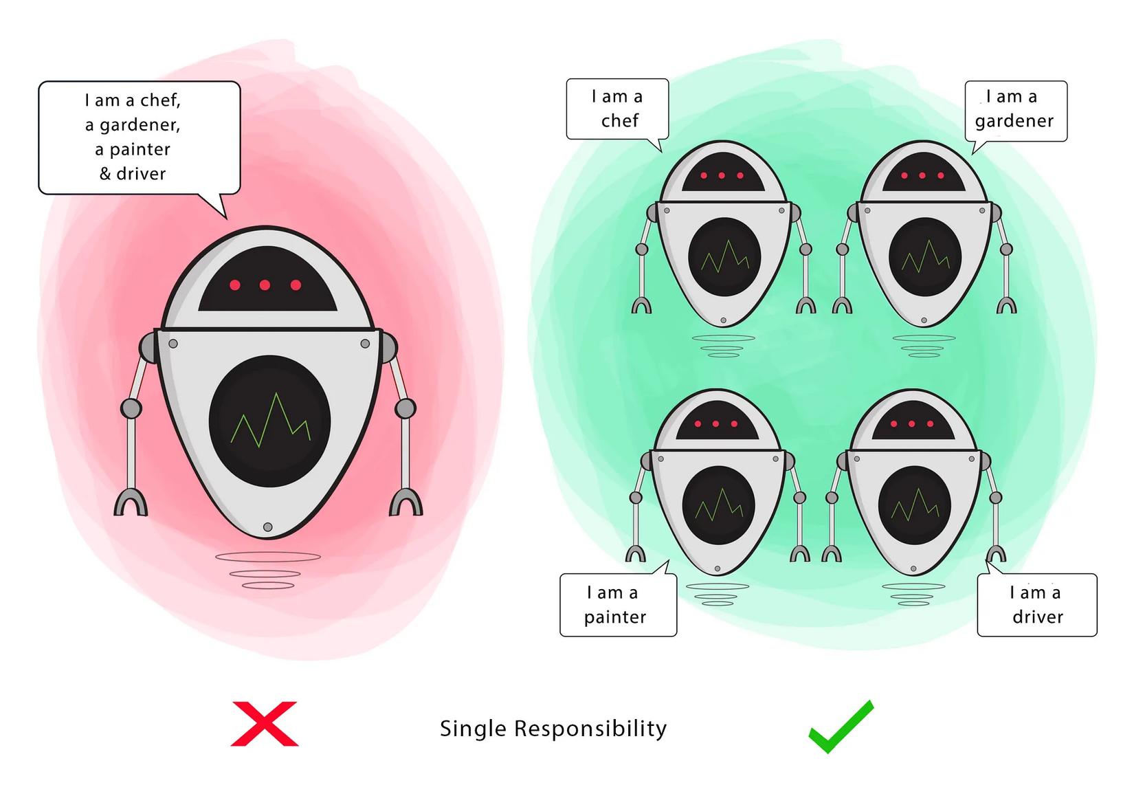 Each class must have one, and only one, reason to change - Một class/module chỉ nên mang một nhiệm vụ duy nhất.