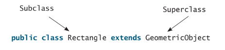 xem xét các đối tượng hình học. Giả sử bạn muốn thiết kế lớp là các đối tượng hình học chẳng hạn như hình tròn, hình chữ nhật. Đối tượng hình học có thể có các thuộc tính, trạng thái chung, chúng có thể là color, filled or unfilled. Lớp chung GeometricObject được sử dụng cho tất cả các đối tượng hình học. đây là một lớp chứa thuộc tính color, filled và các phương thức getter() and setter() và toString() (phương thưc toString trả về một chuỗi mô tả của đối tượng) . Lớp hình tròn và hình chữ nhật có thể được định nghĩa là các lớp con của lớp cha GeometricObject.