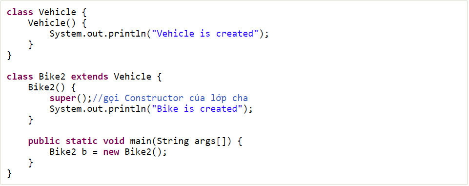 super() được sử dụng để gọi trực tiếp Constructor của lớp cha.