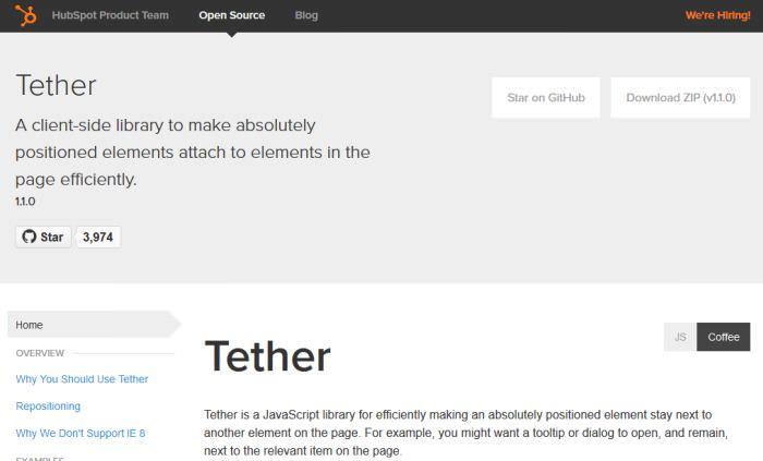 Đừng quên rằng Tether là thư viện JavaScript của bên thứ ba, bạn cần đưa riêng nó vào HTML trước tệp bootstrap.js của bạn.