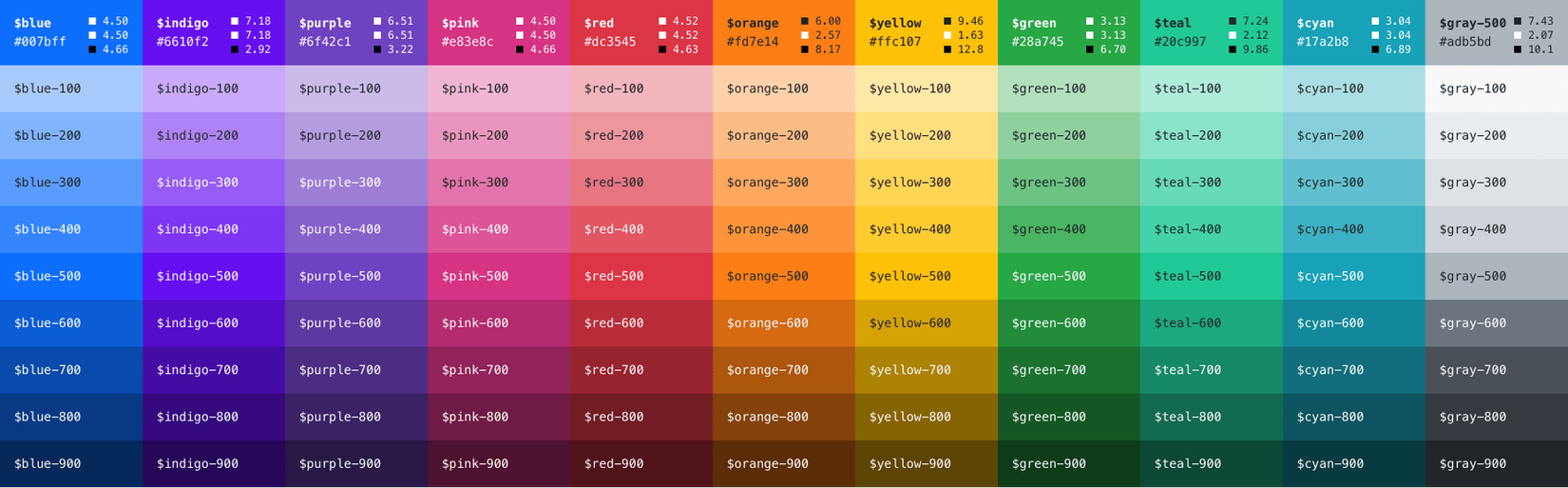 Bảng màu đã được mở rộng và tích hợp sẵn trong v5 và độ tương phản màu cũng được cải thiện nhiều. Như vậy người dùng có thể dễ dàng tùy chỉnh giao diện của ứng dụng hơn, tiếp cận với bootstap v5 dễ dàng hơn.