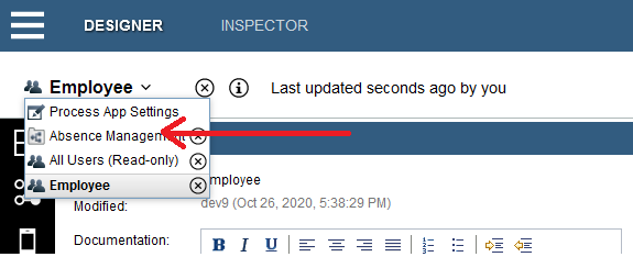 Trong Library (tab chọn 3 dấu gạch ngang), click chọn Processes và chọn tiếp Process và gõ "Absence Management". Màn hình process diagram được tạo ra như sau: