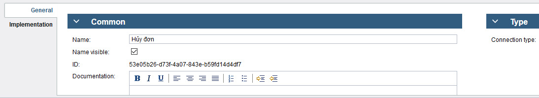 Trong mục Properties/ General đổi tên thành Hủy đơn, hãy đảm bảo rằng bạn đã tick vào box Name visible để hiển thị tên của luồng lên diagram.