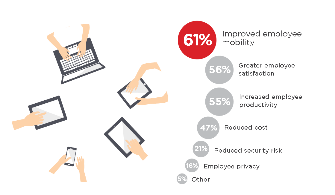 Việc cho phép sử dụng thiết bị cá nhân vào môi trường công sở còn thể hiện mức độ tin tưởng của doanh nghiệp đối với nhân viên. Do vậy, một chính sách BYOD hiệu quả không chỉ giúp giảm tối đa chi phí đầu tư thiết bị và cơ sở vật chất mà còn nâng cao mức độ hài lòng của nhân viên đối với doanh nghiệp.
