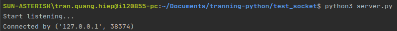 while Trueđể Server liên tục xử lí dữ liệu Client gửi tới cho đến khi Client ngắt kết nối. - Code trong hàm while là phần xử lí của Server đối với dữ liệu từ Client. Như ở trên, Server sẽ gửi lại bất cứ dữ liệu nào Client gửi tới.