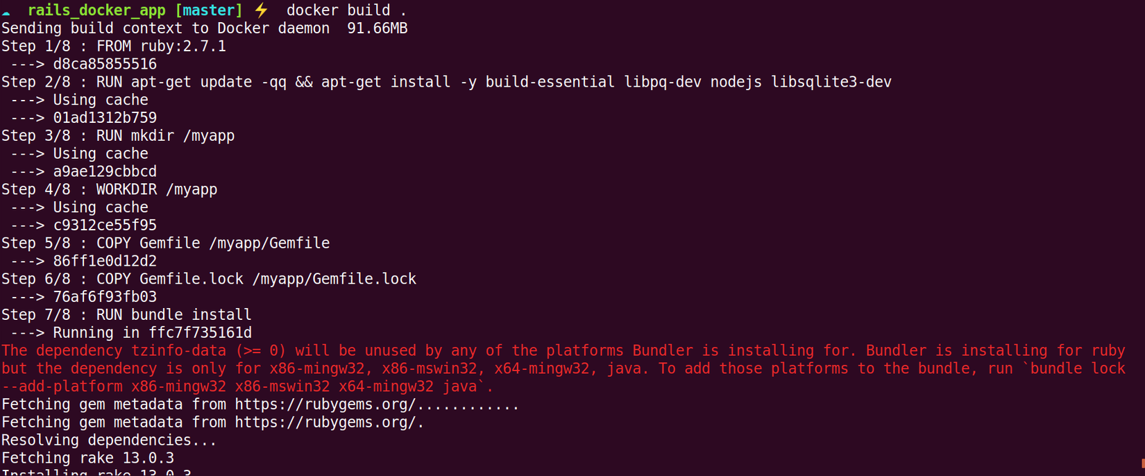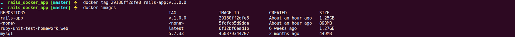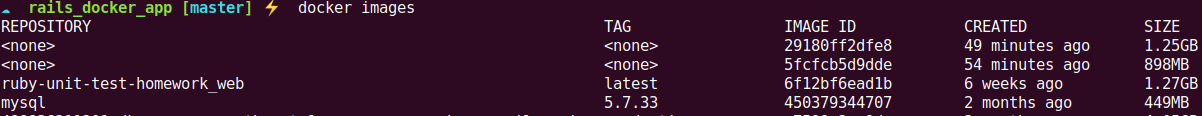 Hãy chú ý đến size của image mới được tạo ra: 1.25GB => Đó là tất cả những packages cần có khi bạo tạo một ứng dụng rails