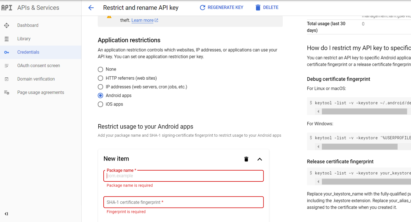 - Copy generated SHA-1 certificate fingerprint và đặt nó như hiển thị ở trên