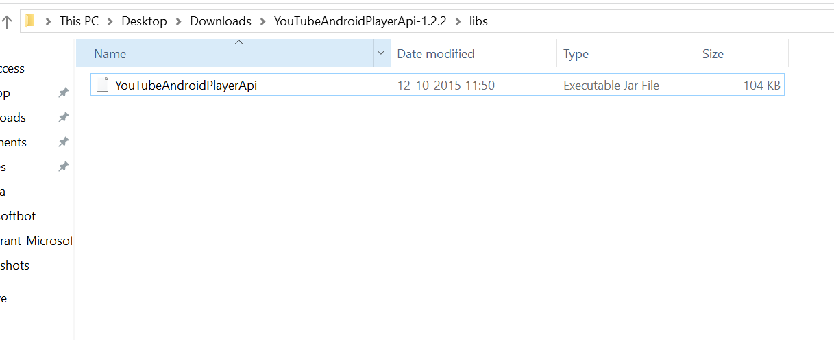 - Đi đến YouTube Android Player API và download YouTube Android Player API jar file - Link