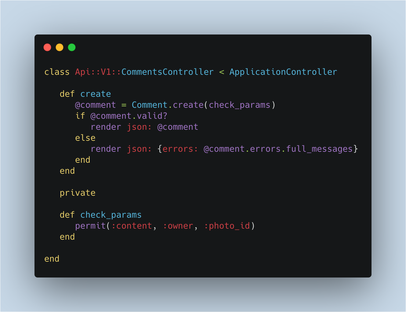 Cũng trong file app/controllers/api/v1/comments_controller.rb, add thêm các methods: