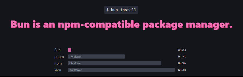 Nếu lấy nodejs là mốc so sánh, thì phải nói Bun nhanh, super nhanh. Bun được sinh ra từ sự thất vọng của Jarred Sumner (Founder/CEO của Bun) với tốc độ và sự thiếu thốn của Javascript: “Tôi rất thất vọng vì mọi thứ trong JavaScript đều chậm đến mức nào. Tôi biết JavaScript có thể nhanh hơn rất nhiều”. Là cựu nhà phát triển giao diện người dùng tại Stripe, Jarred biết chu kỳ lặp lại nhanh là điều cần thiết để tăng năng suất. Kinh nghiệm của nhà phát triển rất quan trọng. Do đó, tốc độ của Bun không bị giới hạn ở việc phục vụ các yêu cầu nhanh hơn các thời gian chạy khác mà còn có nghĩa là tốc độ cài đặt gói, chạy thử nghiệm, đóng gói và dịch mã nhanh hơn.