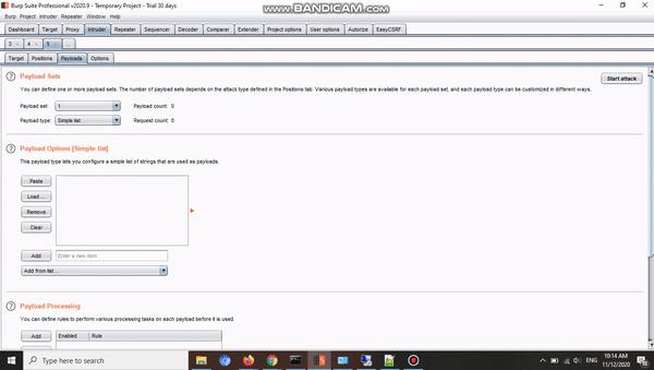 Bước 3: Làm việc trên Intruder: