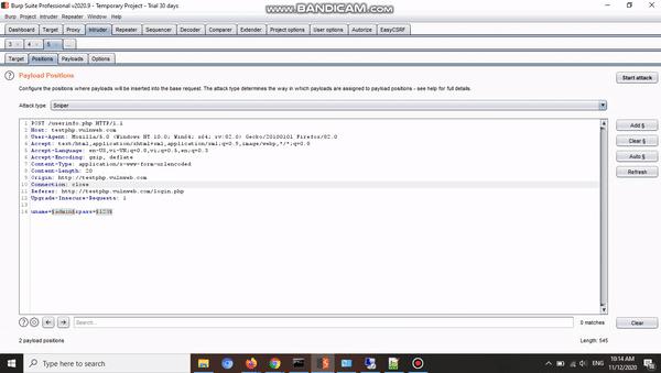 Thay vì việc ngồi nhập một loạt các user name password để kiểm tra, các bạn có thể tự động hóa nó để kiểm tra qua mô đun: Intruder Demo tấn công brute force login form (Vì là demo nên bỏ qua thông tin đăng nhập test/test đã được hiển thị)
